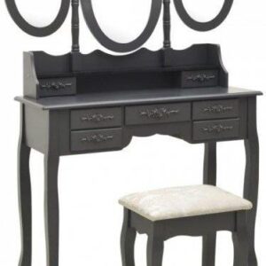 Vidaxl Toaletka Z Taboretem I Składanym 3 Częściowym Lustrem Szara 37468