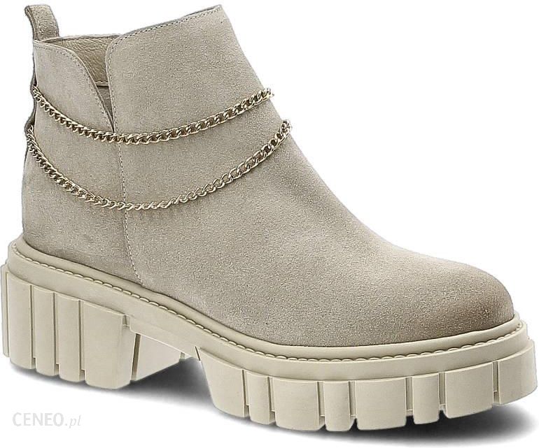 Beżowe Botki Chebello Damskie Modne Obuwie