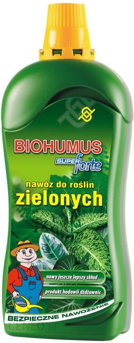Biohumus Super Forte nawóz przeznaczony do nawożenia wszelkich roślin zielonych i ozdobnych z liści. Nawóz ten został wzbogacony o odpowiednio dobrane formy łatwo przyswajalnego azotu, niezbędnego do prawidłowego rozwoju zielonych części roślin. Produkt hodowli dżdżownic. Skład: – azot (N) – 1,5% – fosfor (P2O5) – 0,5% – potas (K2O) – 1%