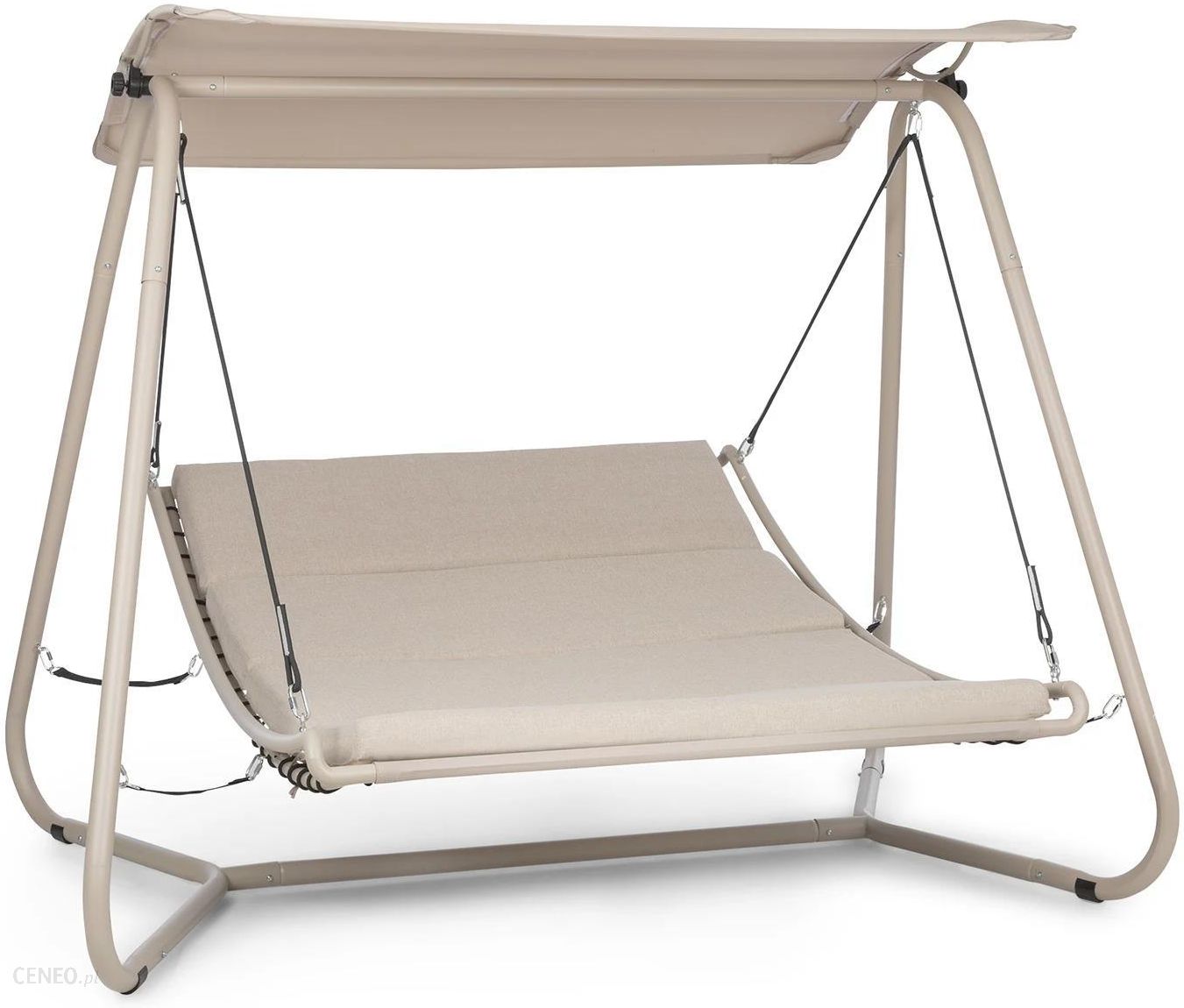 Ciesz się radosnymi chwilami cudownej lekkości dzięki huśtawce ogrodowej Garden Grove marki blumfeldt.Solidna rama stalowa pokryta lakierem proszkowym nadaje leżakowi bujanemu Garden Grove marki blumfeldt całkowitą stabilność. Bardzo miękka powierzchnia do leżenia z tapicerką o grubości 6 cm oraz ściąganym i nadającym się do prania obiciem jest nie tylko wyjątkowo odporna, ale dzięki powierzchni o wymiarach 148 x 200 cm (szer. x gł.) posiada także dostateczną ilość miejsca dla 2 osób. Dwie wytrzymałe pętle linowe umożliwiają relaksujące kołysanie i nadają Garden Grove przyjemne uczucie bujania w obłokach. Duży dach przeciwsłoneczny gwarantuje niezawodny cień nawet przy silnym promieniowaniu słonecznym. Śruby ze stali szlachetnej zapewniają ponadto trwałość konstrukcji, która pomimo swojej wysokiej stabilności waży zaledwie 30 kg.Leżak bujany Garden Grove marki blumfeldt zapewnia wyjątkowy komfort leżenia.