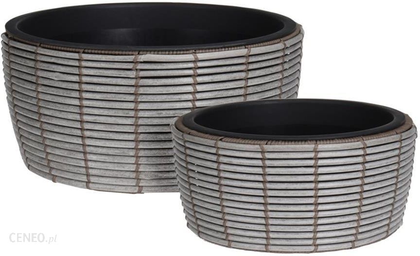 Komplet dwóch osłonek z wyjmowanym wkładem dla wielbicieli roślinności i stylowych dodatków. Osłonka wykonana z trwałego polirattanu sprawdzi się na tarasie, balkonie lub w ogrodzie. Ta donica ogrodowa spełni nie tylko swoją podstawową funkcję, będzie również stylową ozdobą ogrodów i tarasów. Doniczki odporne na działanie mrozu i promieni UV.Wymiary:Duża: 44×22 cmMała: 36×18 cm