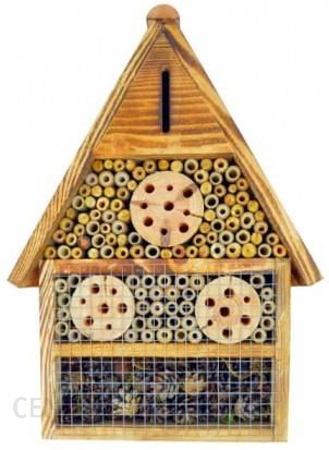 Hotel dla owadów 15.2 Wymiary: Wysokość: 50 cm Szerokość: 30 cm Głębokość: 12 cm Mamy przyjemność zaprezentować Państwu wyjątkowe domki dla owadów. Wykonane wyłącznie z surowców naturalnych będą niepowtarzalną ozdobą naszego ogrodu, ale i dzięki lokatorom hotelu, zniknie problem ze szkodnikami zamieszkującymi nasze „oazy spokoju” np. mszycami. Domki, prócz oczywiściej przyjemności obserwowania z bliska pracy owadów, pomogą nam zwabić do swego ogrodu pszczoły. Dzięki ich ciężkiej pracy będzimy mieli zapylone kwiaty, drzewa co z pewnością ucieszy każdego miłośnika przyrody. Domki zbudowane są z kilku sekcji. Każda z nich wypełniona jest: korą, szyszkami lub mchem oraz nawierconymi tyczkami z drewna oraz bambusa. Ma to na celu zwabienie jak największej ilości owadów do ogrodu np. motyli, trzmieli, biedronek czy tez pszczół. Hotele wyposażone są w metalowe koluszko, niezbędne do zamocowania domku na pniu drzewa lub do ściany. Hotele dostępne są w trzech wariantach, zapraszamy do odwiedzenia innych aukcji.