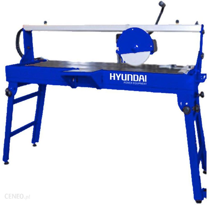 Przecinarka do glazury o mocy 1200 W firmy Hyundai. Przecinarka z tarczową piłą diamentową służy do precyzyjnego cięcia wszelkiego rodzaju płytek ceramicznych, zarówno ściennych, jak i podłogowych oraz kamienia, cegły, cegły klinkierowej i innych materiałów ceramicznych. Jest to uniwersalne urządzenie zapewniające wysoką wydajność i precyzję. Dzięki szybkiemu i bezproblemowemu montażowi 4 stopek przeznaczone jest zarówno do stacjonarnego, jak i mobilnego użycia. Prędkość obrotowa bez obciążenia: 2.950 obr/min. Maksymalna głębokość cięcia: 45 mm Maksymalna długość cięcia: 92 mm. Rozmiar blatu roboczego: 950 mm x 390 mm.