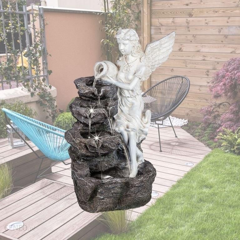 Dekoracyjna fontanna „Anděl” zamieni Twój ogród lub taras w oazę dobrego samopoczucia. Zawiera płynnie regulowaną pompę o płynnej pracy, dzięki której woda płynie w obwodzie, dzięki czemu nie ma konieczności podłączania wody z zamówienia. Fontanna wykonana jest z wysokiej jakości poliżywicy odpornej na warunki atmosferyczne i promieniowanie UV.Dane techniczne:wymiary: 35 x 32 x 49 cm (dł. x szer. x wys.)waga: 4,2 kgmateriał: polyresinoświetlenie: 3 diody LEDmoc pompy: 3 Wochrona: IP 44wydajność: 250 l/hdługość kabla pompy: 2 mZawartość opakowania:1 x fontanna ogrodowa1 x pompa