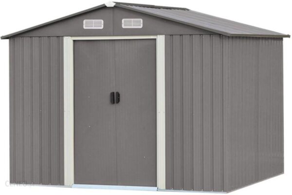 Praktyczny domek ogrodowy do przechowywania i ochrony narzędzi ogrodowych, mebli itd. przed szkodliwymi warunkami. Wykonany z ocynkowanej stali, z podwójnymi, przesuwnymi drzwiami. Dwuspadowy dach, 4 kratki wentylacyjne.