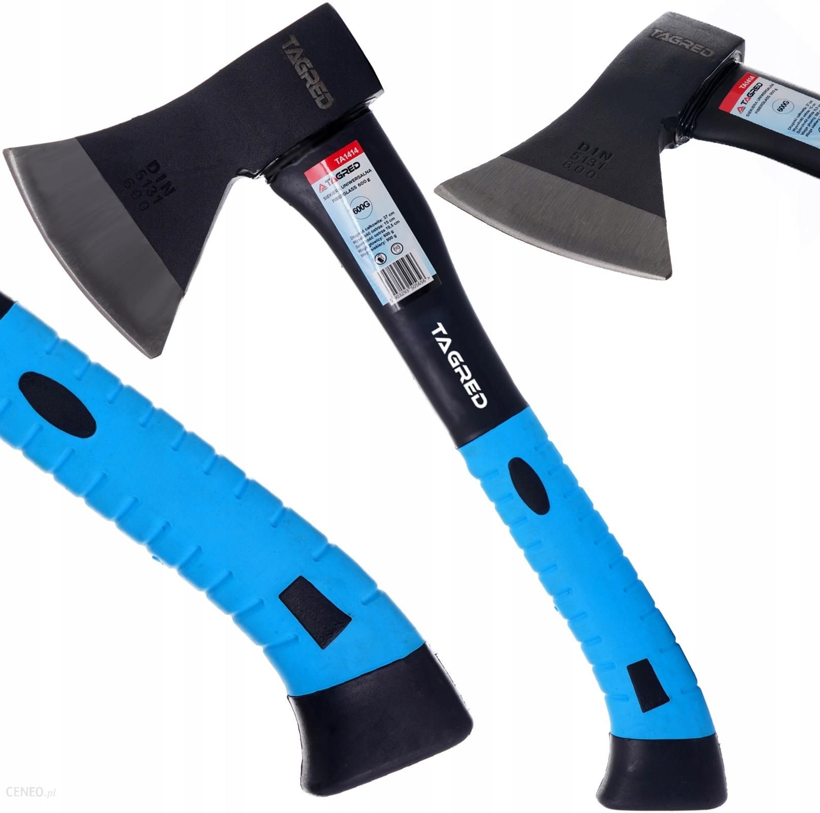 Siekiera uniwersalna, toporek Fiberglass 600gZalety:Trzonek wykonany z włókna szklanego (fiberglass) odpornego na zmiany temperatury i warunków pogody (nie pochlania wilgoci z powietrza).Antypoślizgowa rękojeść – maksymalny komfort pracy – pewne trzymanie narzędziaStosunkowo długi trzonek – zwiększa siłę uderzeniaNiesłychanie solidna i ergonomiczna siekiera, której trzonek został wykonany w technologi Fiberglass (czyli ze wzmocnionego włókna szklanego). Siekiera została doskonale wyważona, tak wyprofilowana aby maksymalnie ułatwić trzymanie w dłoni. Sama głowica została wykonana z wysokogatunkowej stali, jest bardzo trwała na uszkodzenia doskonale ostraGórna część trzonka posiada zabudowany metalowy wspornik usztywniający całość konstrukcji. Idealne wyważenie siekiery oraz dobrana długość rękojeści wpływają na komfort pracy.Skład zestawu:Siekiera uniwersalna TAGREDDane techniczneModel: TA1414Trzonek z włókna szklanego (fiberblass)Gumowa rękojeśćŁatwa do ostrzeniaWymiaryDługość całkowita: 37cmWysokość ostrza: 15cmSzerokość ostrza 10,5cmWaga głowicy : 600 gWaga siekiery: 900 g