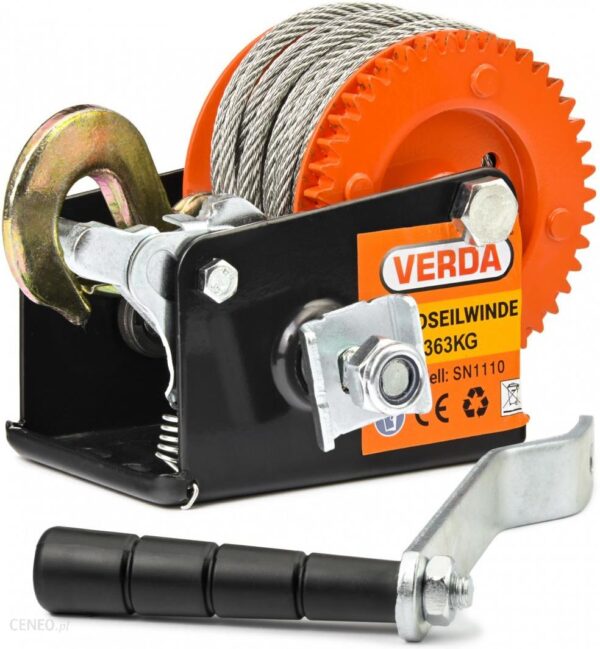 Wciągarka ręczna wykonana z wysokiej jakości materiałów zapewniających jej odpowiednią trwałość i niezawodność. Wyposażona jest w mocny odlewany hak ze sprężyną zwrotną. Sprzęt zapewnia bezpieczne i bezproblemowe wciąganie i opuszczanie przedmiotów.