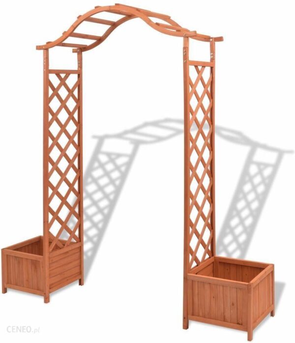 Ta pergola ogrodowa w kształcie łuku z donicami będzie pięknym dodatkiem do każdej przestrzeni na świeżym powietrzu. Można ją również wykorzystać do stworzenia imponującego wejścia. Ta pergola ogrodowa w kształcie łuku posiada 2 donice po obu stronach. Można w nich posadzić wszystkie rośliny i kwiaty. Wykonana z litego drewna odpornego na warunki atmosferyczne jest wystarczająco trwała, aby można jej było używać na zewnątrz przez cały rok. Krata jest łatwa w montażu i podtrzymuje rośliny pnące.