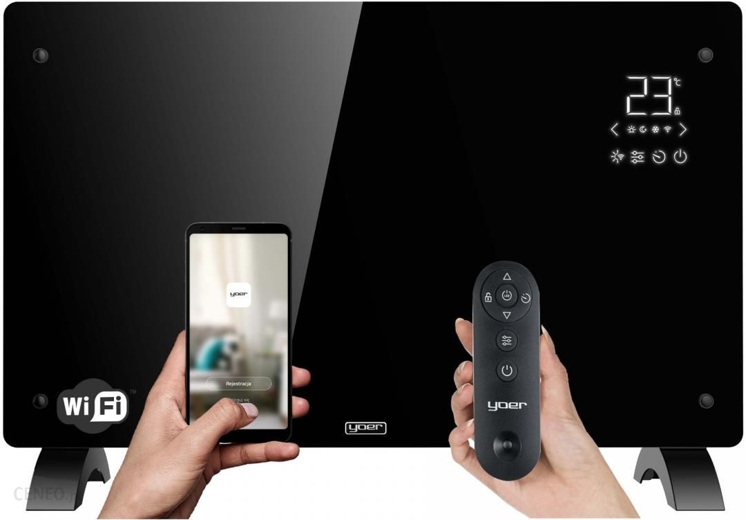 ELEKTRYCZNY GRZEJNIK KONWEKTOROWY YOER GLOSSO CH03BKBUDOWA – WAŻNIEJSZE ELEMENTYPanel przedni ze szkła hartowanegoStelaż montażowy na ścianęPodwójne montowane nóżkiDotykowy panel sterowaniaWlot powietrzaWylot powietrzaDotykowy panel sterowania + wyświetlacz LEDPilot zdalnego sterowaniaBezpiecznik termicznyCECHY PRODUKTUWbudowany termostat – utrzymanie zadanej temperatury w pomieszczeniu24 h programator czasowy – zaprogramowanie uruchomienia oraz zakończenia pracy urządzenia według własnych potrzebProgramowanie pracy urządzenia na 7 dni – ustalenie harmonogramu pracy urządzenia na cały tydzień, dzięki aplikacji mobilnejDotykowy panel sterowania – łatwość zaprogramowania pracy urządzenia za jednym dotknięciem palcaWyświetlacz LED – możliwość odczytu temperatury oraz trybu pracy urządzeniaPilot zdalnego sterowania – komfortowa obsługa urządzenia, bez potrzeby ruszania się z miejscaPanel ze szkła hartowanego – elegancja i trwałość w jednymPodwyższony stopień ochrony IP24 – możliwość montażu urządzenia w pomieszczeniach o wyższej wilgotności2 sposoby montażu – ścienny oraz wolnostojącySmukła, elegancka konstrukcja – oszczędność miejsca i aranżacja pomieszczenia w dobrym styluDuże otwory wentylacyjne – zapewniają prawidłowe funkcjonowanie urządzenia z zachowaniem bezpieczeństwa NAJWAŻNIEJSZE FUNKCJE4 tryby pracy: Eco, Komfort, Przeciwzamrożeniowy, Manualny– możliwość zaprogramowania pracy urządzenia według własnych potrzeb- Funkcjonalność oraz oszczędnośćTryb Eco – utrzymanie komfortu cieplnego przy najwyższej oszczędnościoptymalne wykorzystanie energii – zmniejszenie zużycia energii do 50%wysoka oszczędnośćTryb czuwania- urządzenie zawsze gotowe do podjęcia pracy w wybranym trybieBlokada rodzicielska-funkcja uniemożliwiająca przypadkową zmianę ustawieńWygaszanie wyświetlacza-praca urządzenia przy wygaszonym wyświetlaczu.Sterowanie za pomocą aplikacji- możliwość zdalnego sterowania za pomocą smartfonu bądź tabletu z systemem Android oraz iOSOchrona przed zamarzaniem-termostat wyposażony w czujnik z funkcją ochrony przed zamarzaniem (5- 7°C)Podwójna ochrona przed przegrzaniem-wbudowany bezpiecznik termiczny oraz zastosowanie nowoczesnego aluminiowego elementu grzejnego wyposażonego w płytki radiatoroweNOWOCZESNA TECHNOLOGIAStandardowe grzejniki konwekcyjne są wyposażone w wysokotemperaturowe grzałki grzebieniowe, które: powodują spalanie tlenu oraz przypalanie kurzu podczas pracy urządzenia,wywołują nieprzyjemny zapach podczas nagrzewania, prowadzą do wysuszenia powietrza,podczas osiągania wysokich temperatur nagrzewają się do czerwoności, powodując nadmierne nagrzewanie się boków grzejnika, co zwiększa ryzyko oparzenia. Nasz grzejnik konwektorowy został wyposażony w nowoczesny aluminiowy element grzejny w kształcie litery X.Wysoka powierzchnia oprowadzania ciepła oraz szybkość nagrzewania, przy jednoczesnym zmniejszeniu kosztów energiiSzybkie nagrzewanie- natychmiastowe przyjemne ciepło od razu po włączeniu urządzenia.Nowoczesna grzałka- wysoka efektywność pracy urządzenia.Element grzejny wyposażony w płytki radiatorowe- innowacyjna technologia zapewniająca zwiększenie żywotności grzałki przy jednoczesnym minimalnym ryzyku jej przepalenia się.Aluminiowa grzałka niskotemperaturowa- nie rozgrzewa się do czerwoności podczas osiągania wysokich temperatur:Zapobiega przypalania się kurzuZapobiega emitowaniu nieprzyjemnych zapachów podczas nagrzewania.Nie wysusza powietrza. DLACZEGO GRZEJNIK KONWEKTOROWY JEST LEPSZY NIŻ TRADYCYJNY?W grzejnikach konwektorowych energia elektryczna jest zamieniana na ciepło, które jest emitowane, dzięki naturalnej konwekcji. Podstawą zasadą pracy urządzenia jest grawitacyjny przepływ powietrza.Wewnątrz obudowy urządzenia została zamontowana nowoczesna aluminiowa grzałka, a jego specjalna budowa sprawia, że w grzejniku powstaje naturalny cug- czyli ruch powietrza od dołu do góry grzejnika. Możliwość niemal natychmiastowego ogrzania pomieszczenia i osiągniecia zadanej temperatury, dzięki naturalnemu cyklowi grzewczemu, który „wymienia” chłodne powietrze w otoczeniu na ciepłe.Szybkie i skuteczne ogrzewanie wnętrza, poprzez ciepło konwekcyjne, które w sposób bardziej równomierny zapewnia rozkład temperatury w powietrzu oraz naturalną cyrkulację powietrza niż ciepło promieniujące występujące w grzejnikach tradycyjnych.Grzejniki konwektorowe to jedne z najszybciej reagujących grzejników na zmieniającą się w pomieszczeniu temperaturę powietrza, dzięki czemu w ogrzewanym pomieszczeniu nie występuje zjawisko przegrzania oraz wyziębienia.Osiągnięcie w pomieszczeniu żądanej temperatury, dzięki czemu tworzy się odpowiedni komfort cieplny oraz korzystny dla zdrowia mikroklimat.4 TRYBY PRACY URZĄDZENIA”Tryb Eco- – największa oszczędność oraz zachowanie komfortu cieplnego w pomieszczeniu przy wykorzystaniu połowy mocy grzejnika.Czas pracy: 1hKoszt energii: 0,67 złPobór mocy: 1 kWhTryb Komfort – utrzymanie komfortowej temperatury pokojowej przy wykorzystaniu całej mocy grzejnika.Czas pracy: 1hKoszt energii: 1,34 złPobór mocy: 2 kWhTryb Przeciwzamrożeniowy – nie dopuszczenie do wychłodzenia pomieszczenia oraz stałe utrzymanie temperatury pomieszczenia powyżej zamarzania.Tryb Manualny – pozwala zaprogramować dowolnie temperaturę pracy 24/7.DOTYKOWY PANEL STEROWANIA + PILOTWygodne sterowanie urządzeniem na wybrany sposób z pośród 3 dostępnych możliwości.Dotykowy panel sterownia – łatwość starowania urządzeniem za pomocą dotykowych przycisków:Przycisk zmniejszania temperatury – pozwala obniżyć temperaturę.Przycisk trybu łączenia Wi-Fi- – umożliwia połączenie się oraz obsługę urządzenia za pośrednictwem sieci Wi-Fi.Przycisk wybory trybu pracy – zapewnia wybór optymalnego poziomu pracy urządzenia z po